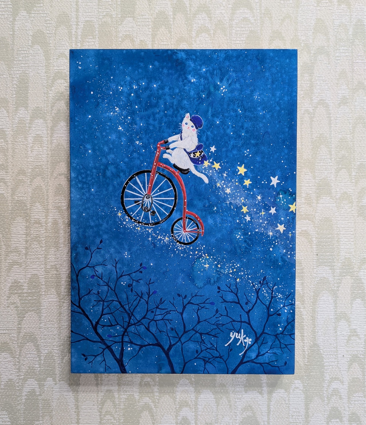 木製パネル、アクリルガッシュ