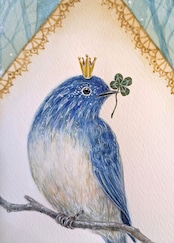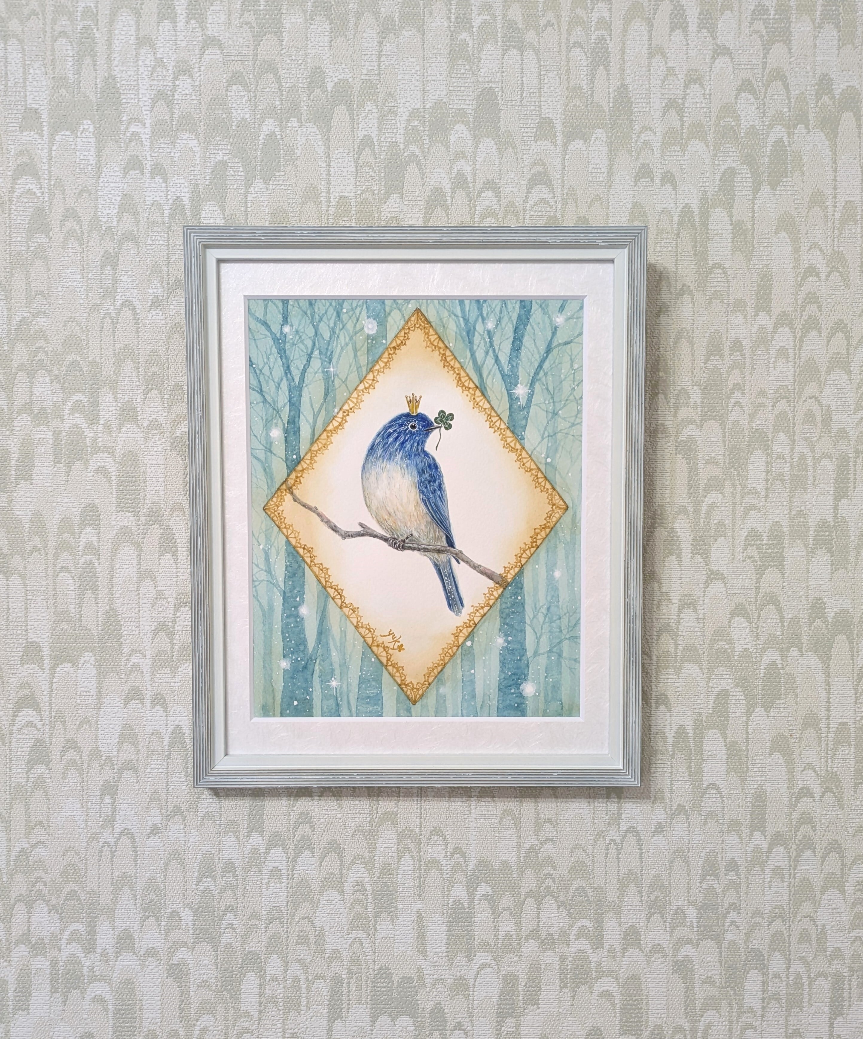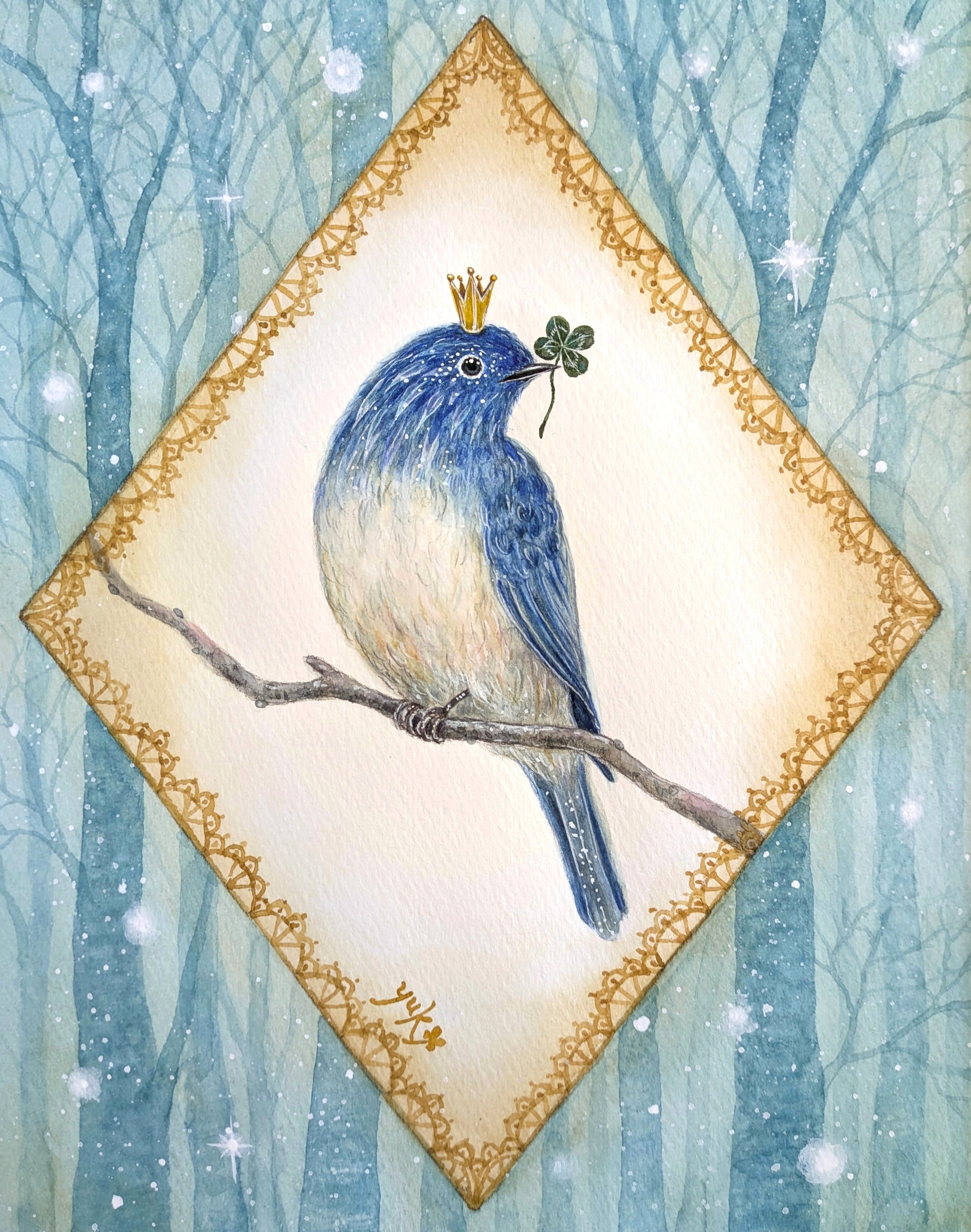 (鳥の種類は架空です。幸せの青い鳥をイメージ。)