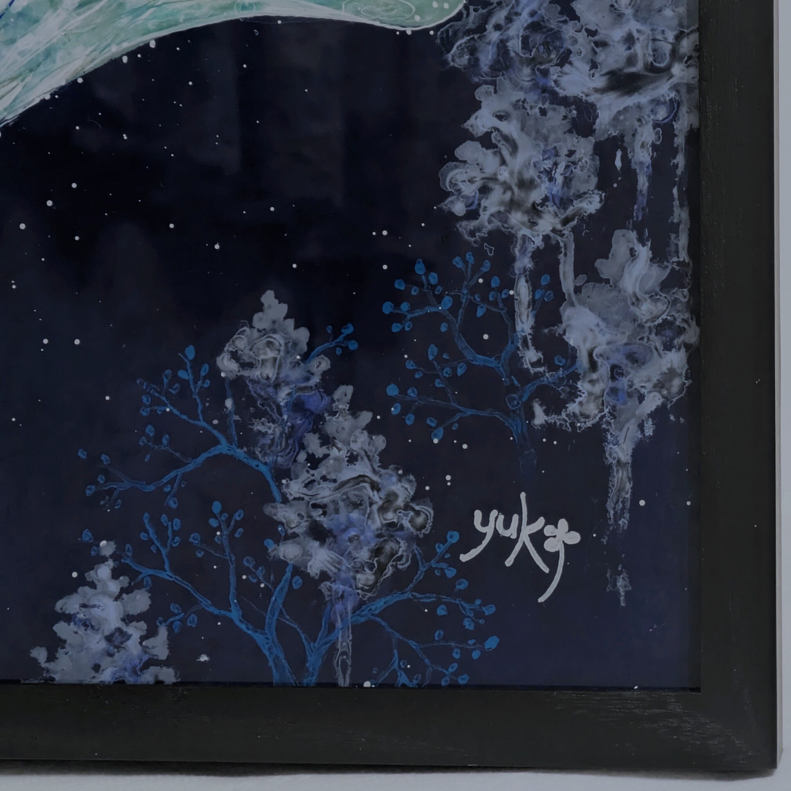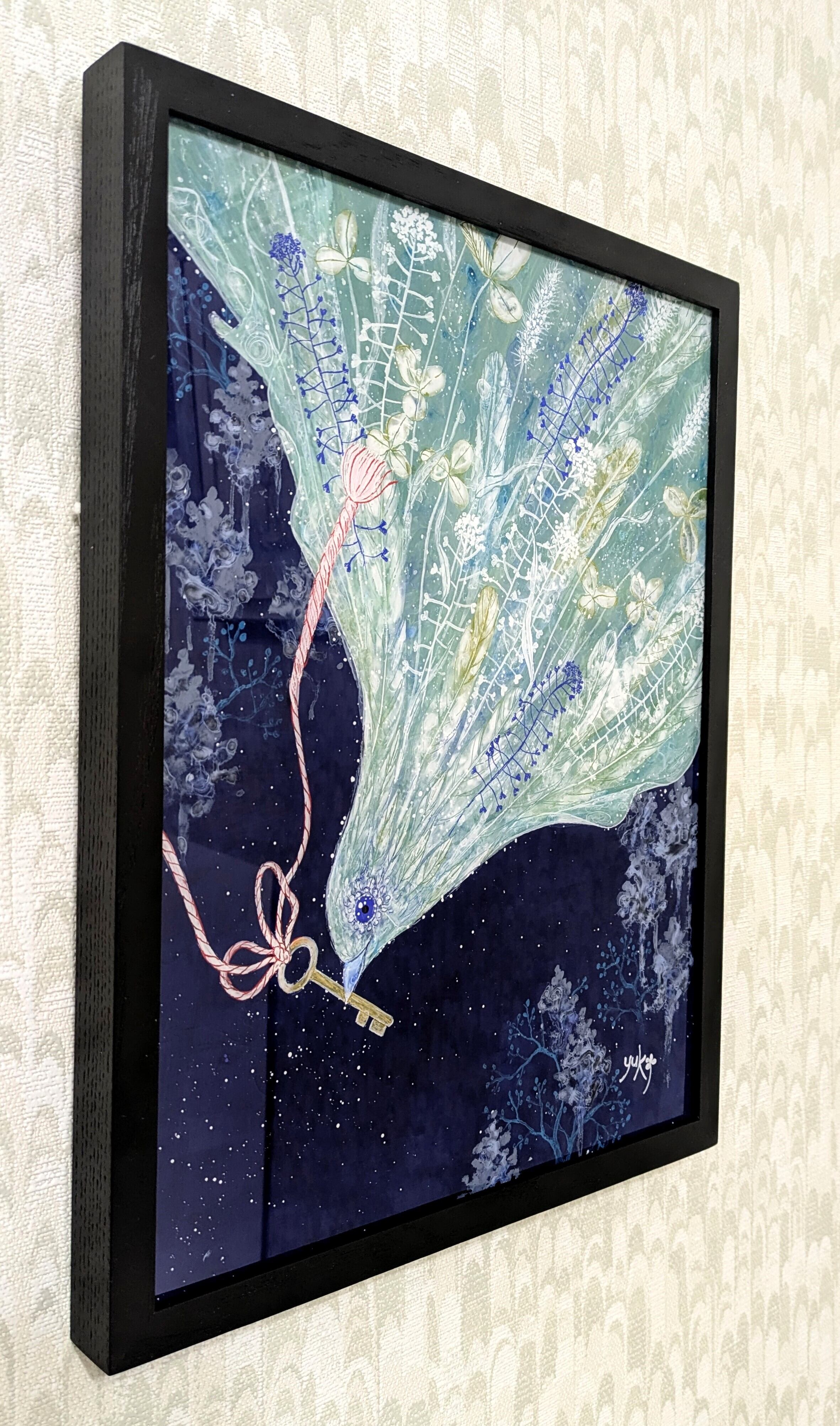 ※撮影時アクリル板に背景が反射してしまうため、色調整により背景が黒くなっている写真がありますが、実際の背景はプルシャンブルー(紺青)です。