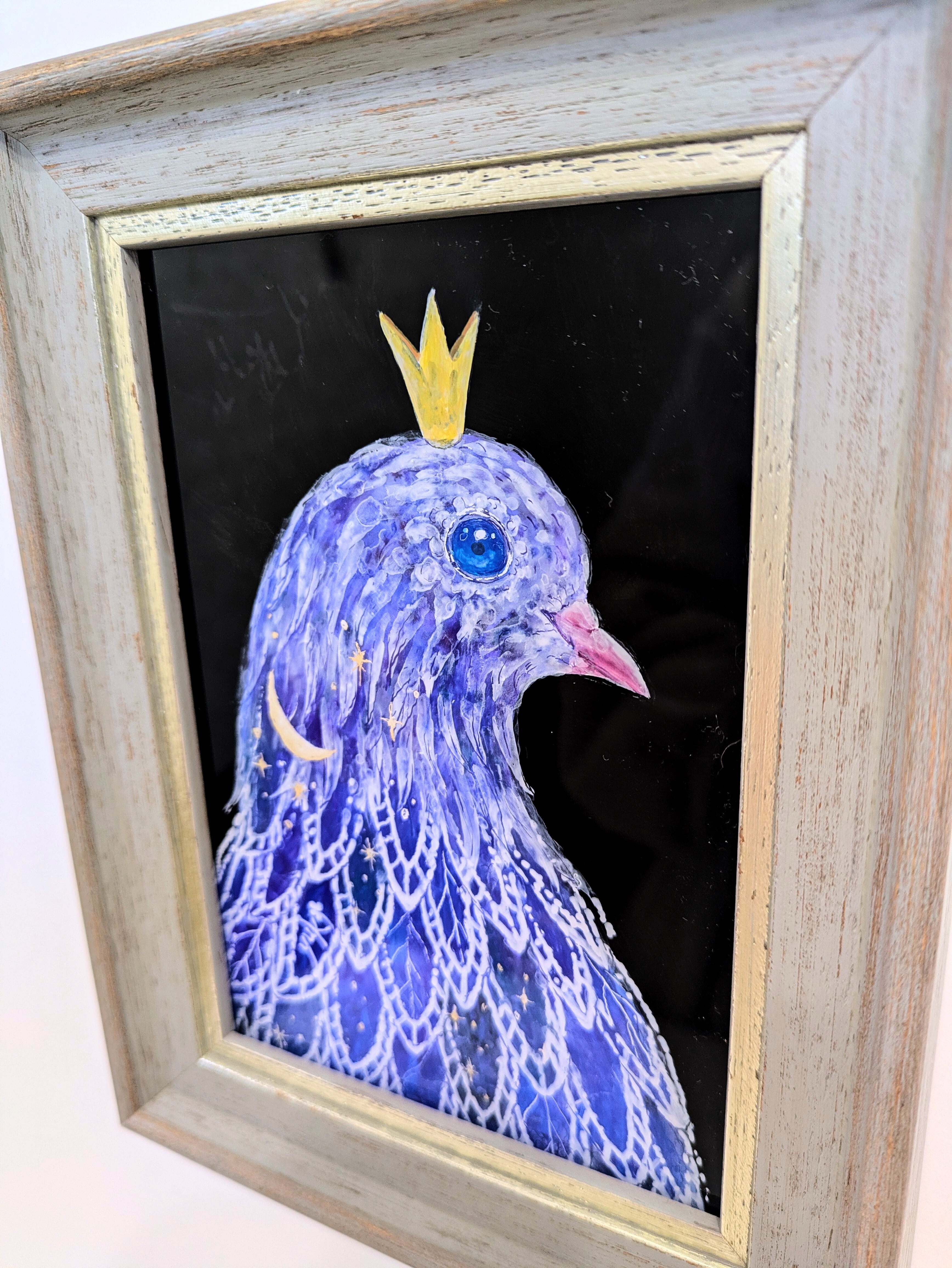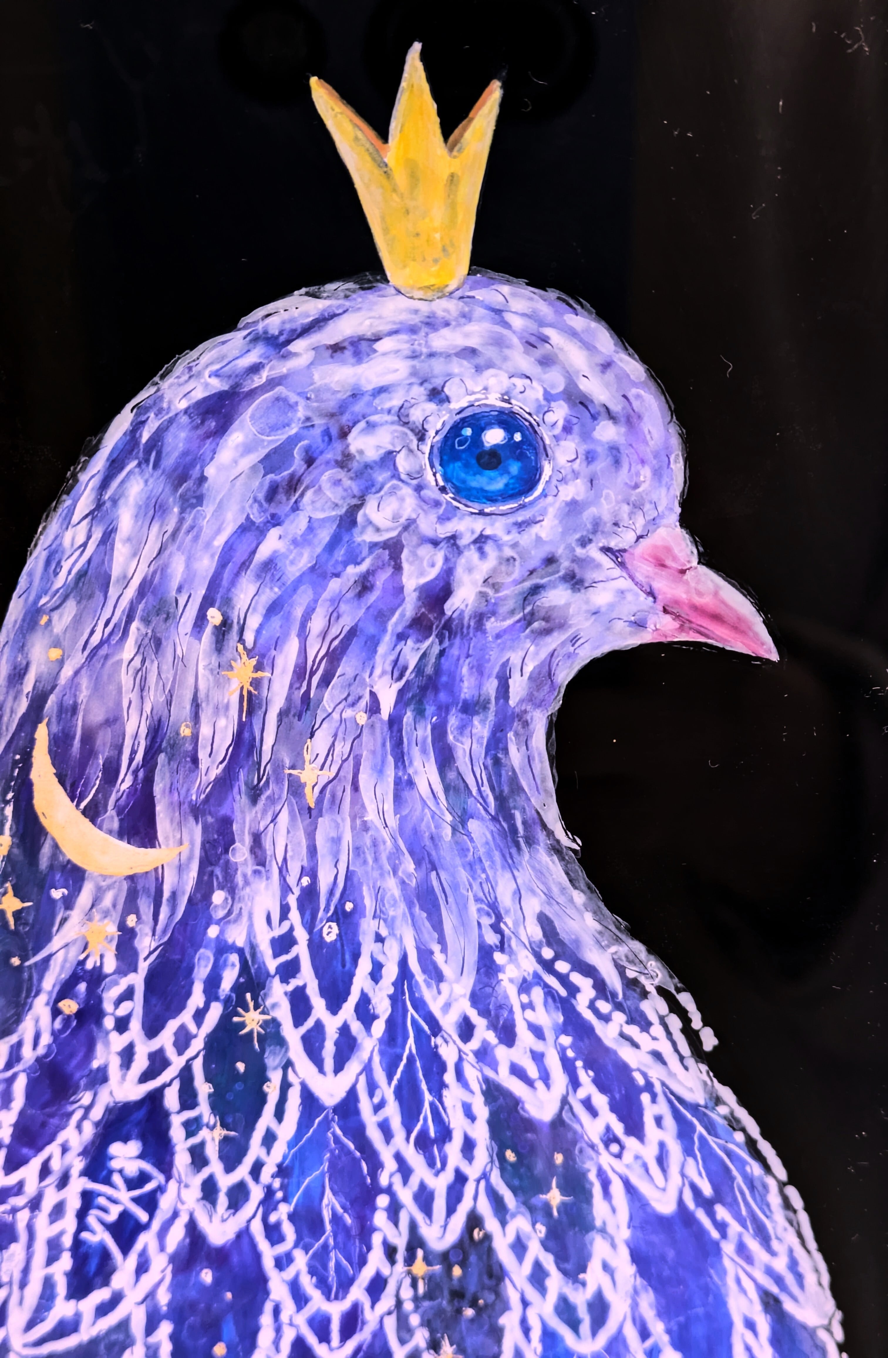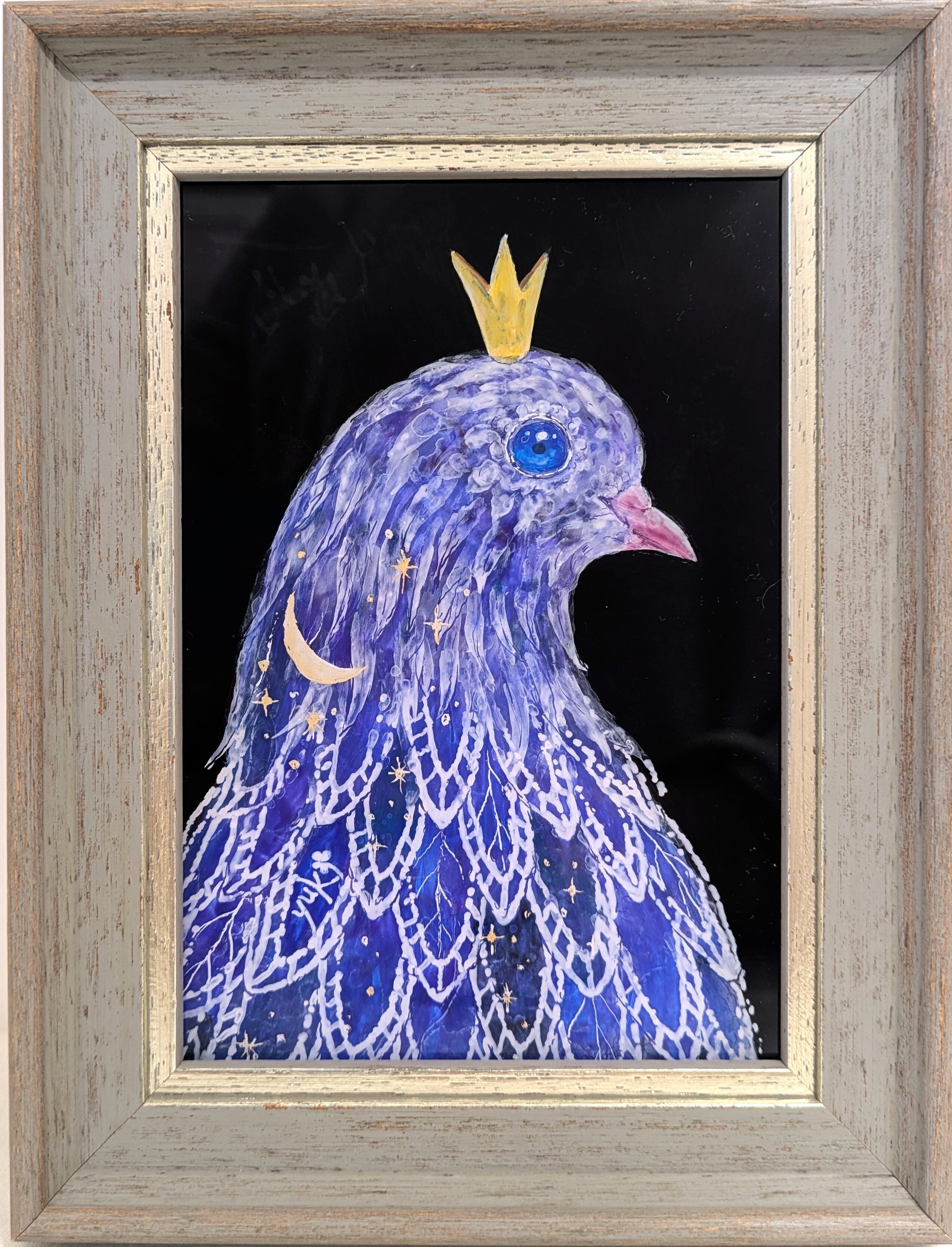 ※ガラス絵とはガラスの裏面から描き、表から鑑賞する技法です。この作品にはガラスではなくアクリル板を使用しています。